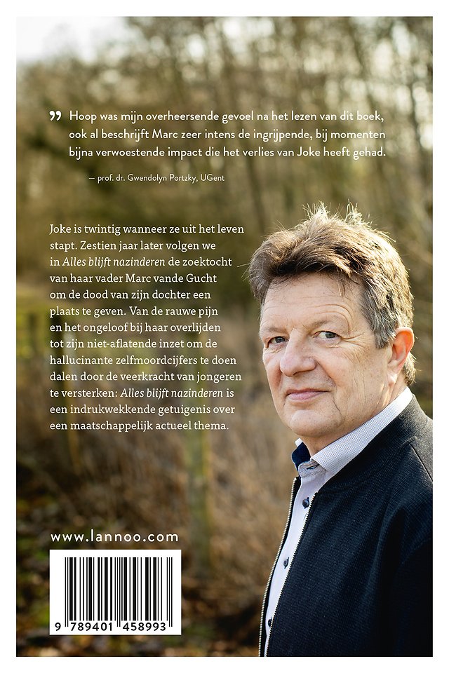 Van de rauwe pijn en het ongeloof bij haar overlijden tot zijn niet-aflatende inzet om de hallucinante zelfmoordcijfers te doen dalen: Alles blijft nazinderen is een indrukwekkende getuigenis over een maatschappelijk hyperactueel thema.